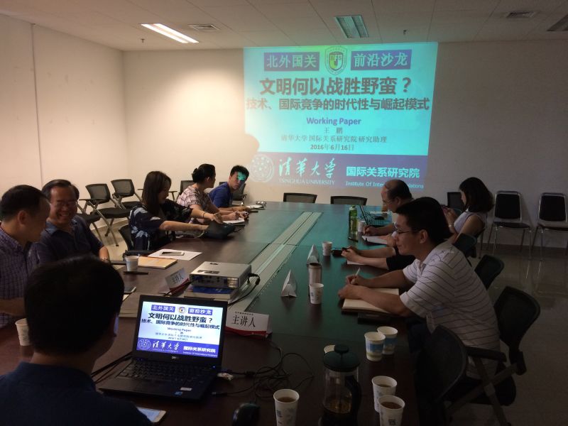 2016年6月16日(周四)15:00-17:00,北外国关前沿沙龙第九期活动在beat365英国官网网站西院综合楼1147会议室举行。本次沙龙主题是“文明何以战胜野蛮?——技术、国际竞争的时代性与崛起模式”。本次沙龙学术活动由英国布里斯托大学政治学博士候选人王鹏主讲、尹继武副教授主持,并邀请学院的田小惠副教授和史泽华副教授两位老师作为评议人。学院院长李永辉教授与学院尹春玲副教授也参与了今天的讨论。