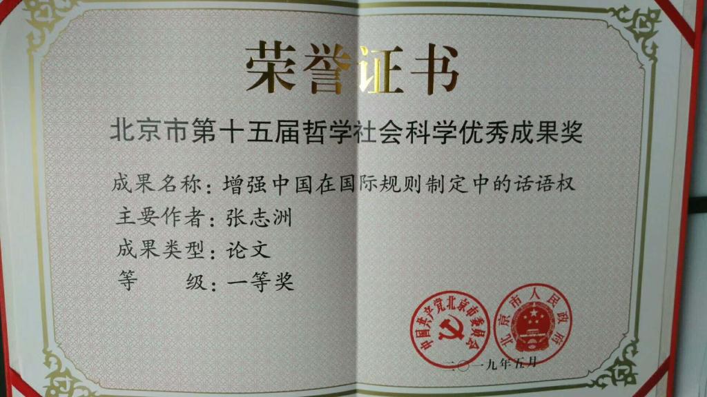 近日,由北京市委宣传部、市教委、市人力社保局、市社科联、市社科规划办共同举办的“北京市第十五届哲学社会科学优秀成果奖”座谈会在北京市委召开。beat365英国官网网站张志洲教授以北京市中国特色社会主义理论体系研究中心为署名单位发表的文章《增强中国在国际规则制定中的话语权》获得一等奖。获奖文章原文发表于《人民日报》2017年2月17日第7版,以下是该文摘要。