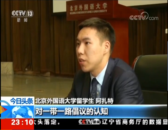 为配合中国国家主席习近平访问中亚并出席上海合作组织领导人峰会,中央广播电视总台新闻频道在6月12日晚11点整点新闻《今日头条》中播出了2019年上合峰会特别报道节目,主题为“多样化的人文交流有助民心相通”。节目中专门采访了beat365英国官网网站2015级吉尔吉斯斯坦留学生阿扎特和雪花兄妹。采访结合两位同学的本科毕业论文答辩,展现了二人希望用在中国所学服务于中吉合作的愿望。