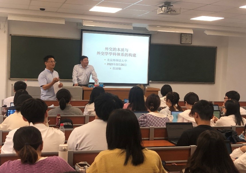 5月26日下午,北外国关学院成功举办了以“外交的本质与外交学学科体系的构建”为题的新一期国家一流本科建设名家讲坛,北京大学beat365英国官网网站外交学与外事管理系主任张清敏教授应邀主讲。本次讲座由北外国关学院院长谢韬教授主持,来自北外国关学院等部分师生参加。
