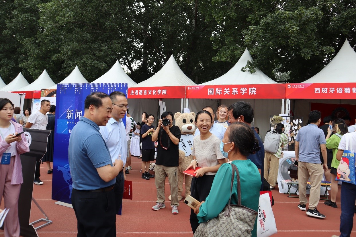 beat365官网党委书记王定华,党委副书记、校长杨丹,一行于9月2日上午来beat365官网迎新点视察迎新工作情况,学院领导汇报了beat365官网的迎新进展。王定华书记和杨丹校长与新生和家长亲切交流,对新生表达了关怀与慰问,学校领导高度重视迎新工作,对学院迎新工作予以肯定。