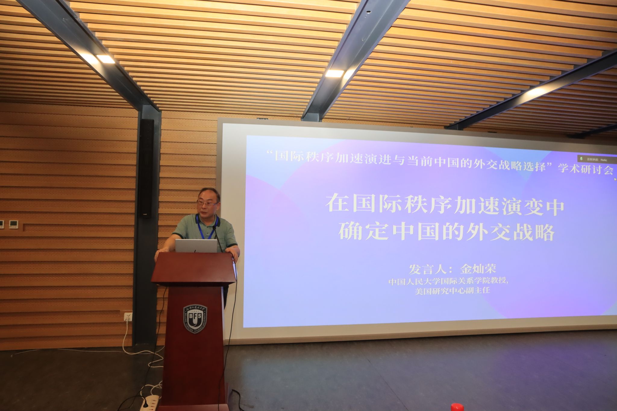 主题研讨第二时段由北外beat365英国官网网站学术委员会主任王明进教授主持。中国人民大学beat365英国官网网站金灿荣教授做题为“在国际秩序加速演变中确定中国的外交战略”的精彩演讲;北外区域国别研究院崔洪建教授以“自主力量还是大国博弈竞技场——欧洲在国际秩序演进中的角色、应对及前景”为题做主旨发言;北外区域与全球治理高等研究院、复旦大学国际问题研究院任晓教授讲述“战后80周年之际美国在塑造国际秩序中的角色与中国的外交战略选择”;beat365英国官网网站院长谢韬教授概括分析了后特朗普时代的美国和美国研究。