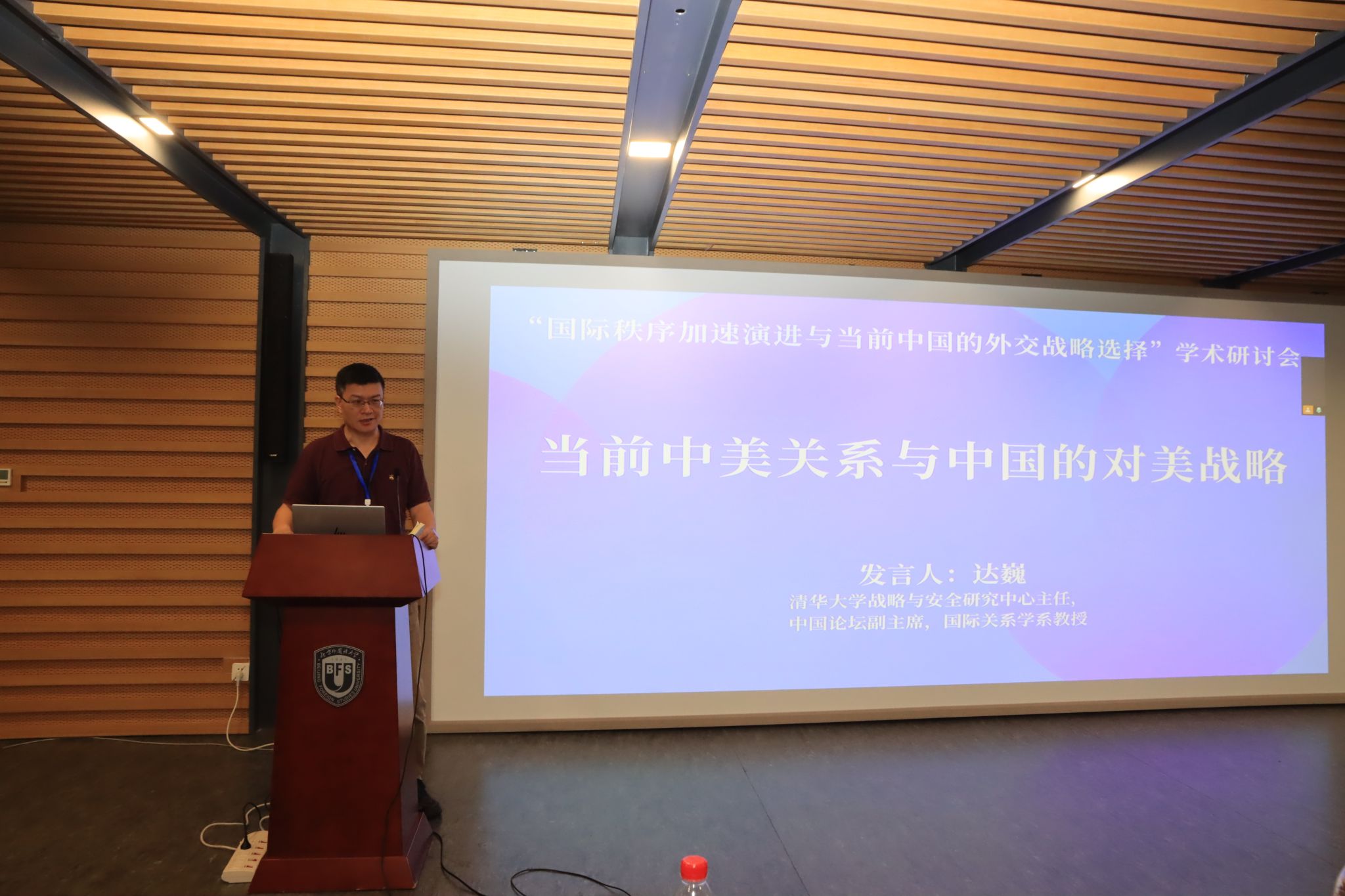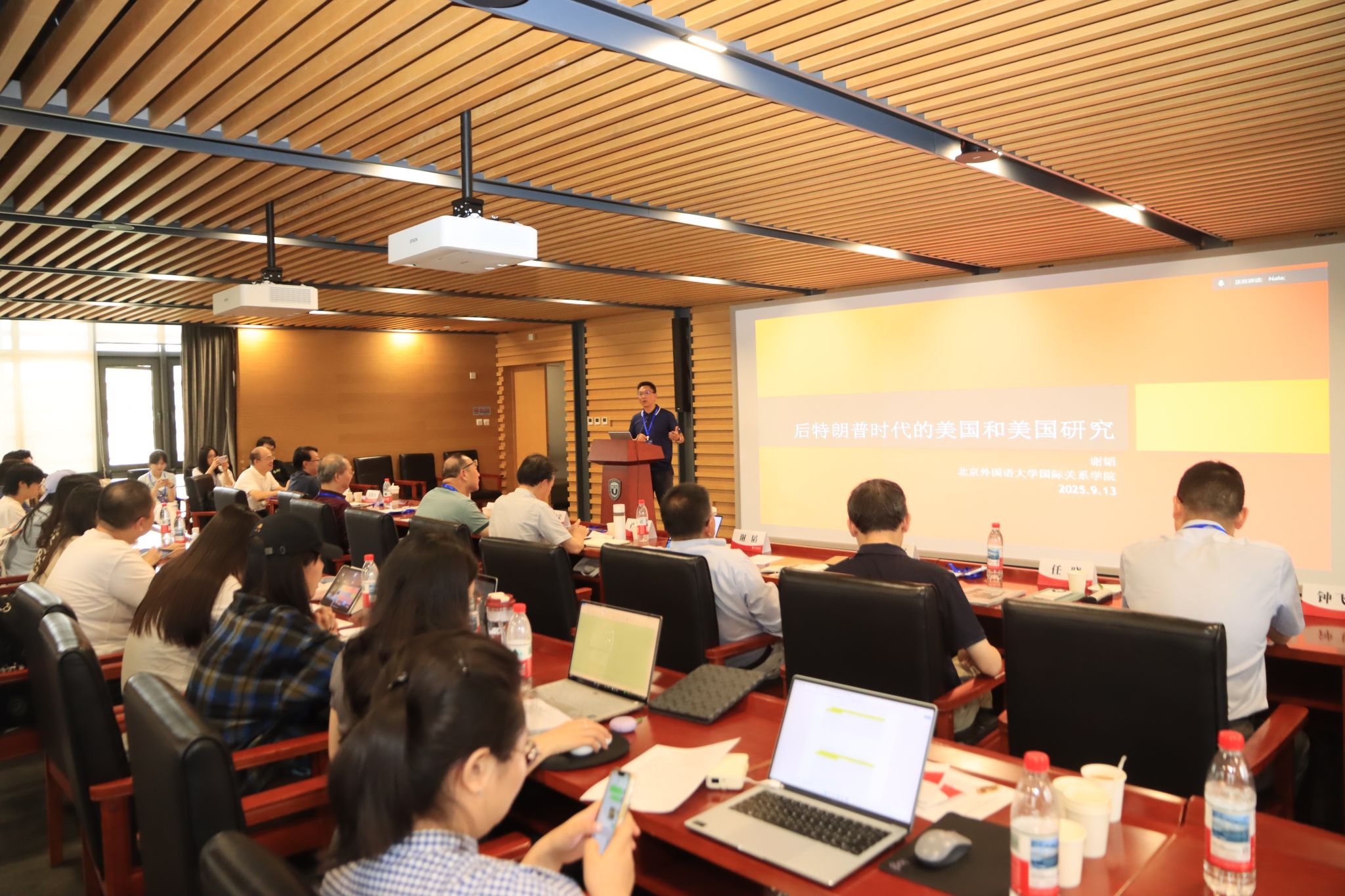本次研讨会的主题研讨分为三个时段进行。第一时段由北外beat365英国官网网站院长谢韬教授主持。南京大学beat365英国官网网站院长朱锋教授分析了当前国际秩序变革的新特点与新态势;北京大学国际战略研究院院长于铁军教授围绕二战后国际秩序演进做了系统性论述;清华大学战略与安全研究中心主任达巍教授结合与访美交流的感知分析了当前中美关系与中国的对美战略;中国人民大学beat365英国官网网站外交学系主任刁大明教授解析特朗普2.0的新变化与近期中美关系走向;北外科研处处长,中国外语与教育研究中心张天伟教授就国际语言秩序的演变及其与国际体系的相互影响展开主旨发言。
