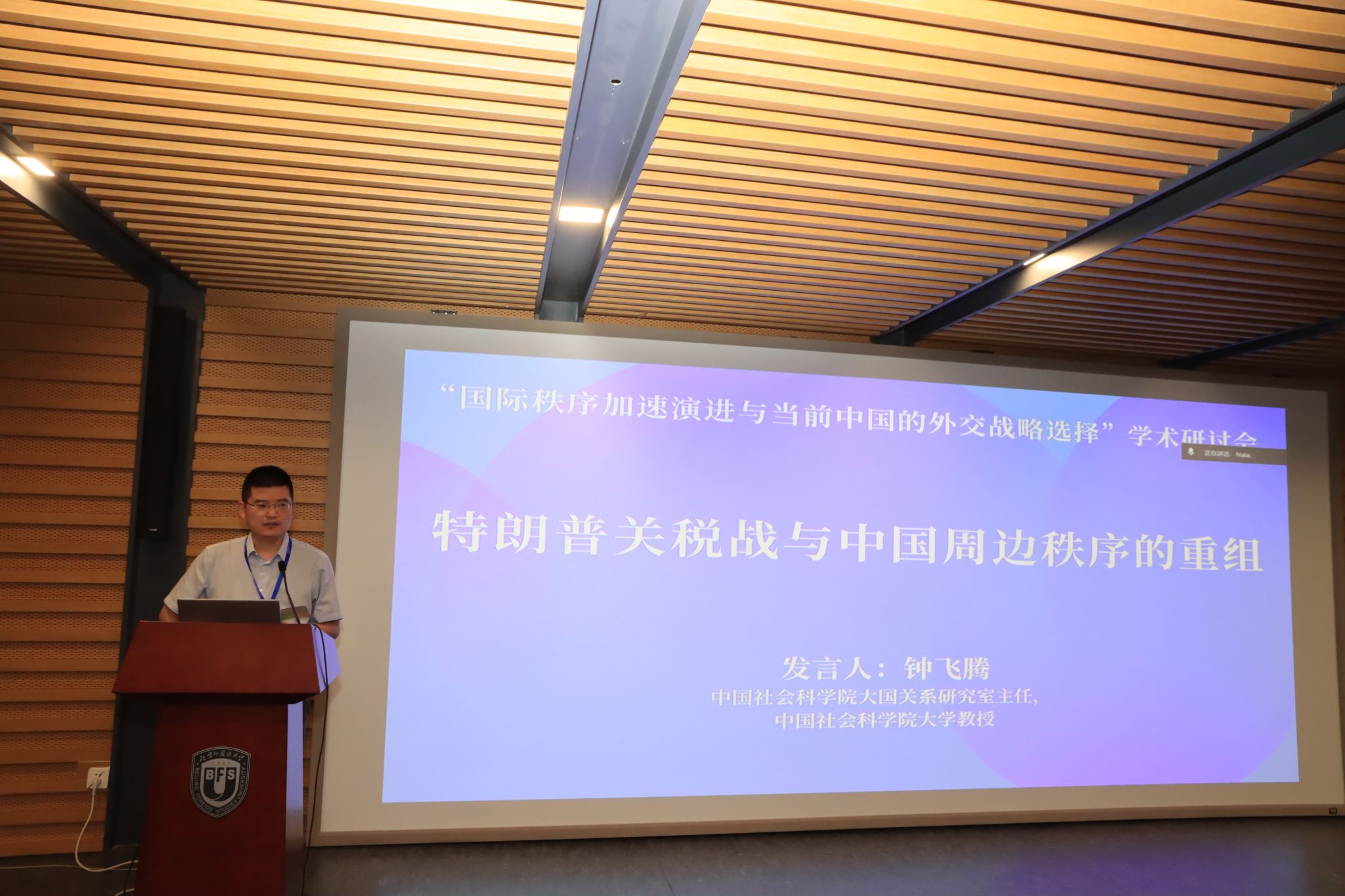 主题研讨第三时段由北外beat365英国官网网站副院长张颖教授主持。中国社会科学院美国研究所所长倪峰教授深入分析特朗普政府第二任期执政的特点;中国社会科学院大国关系研究室主任钟飞腾教授剖析了特朗普关税战与中国周边秩序的重组;外交学院特聘教授张胜军围绕“百年变局下的国际体系转型与国际秩序重构”发言。