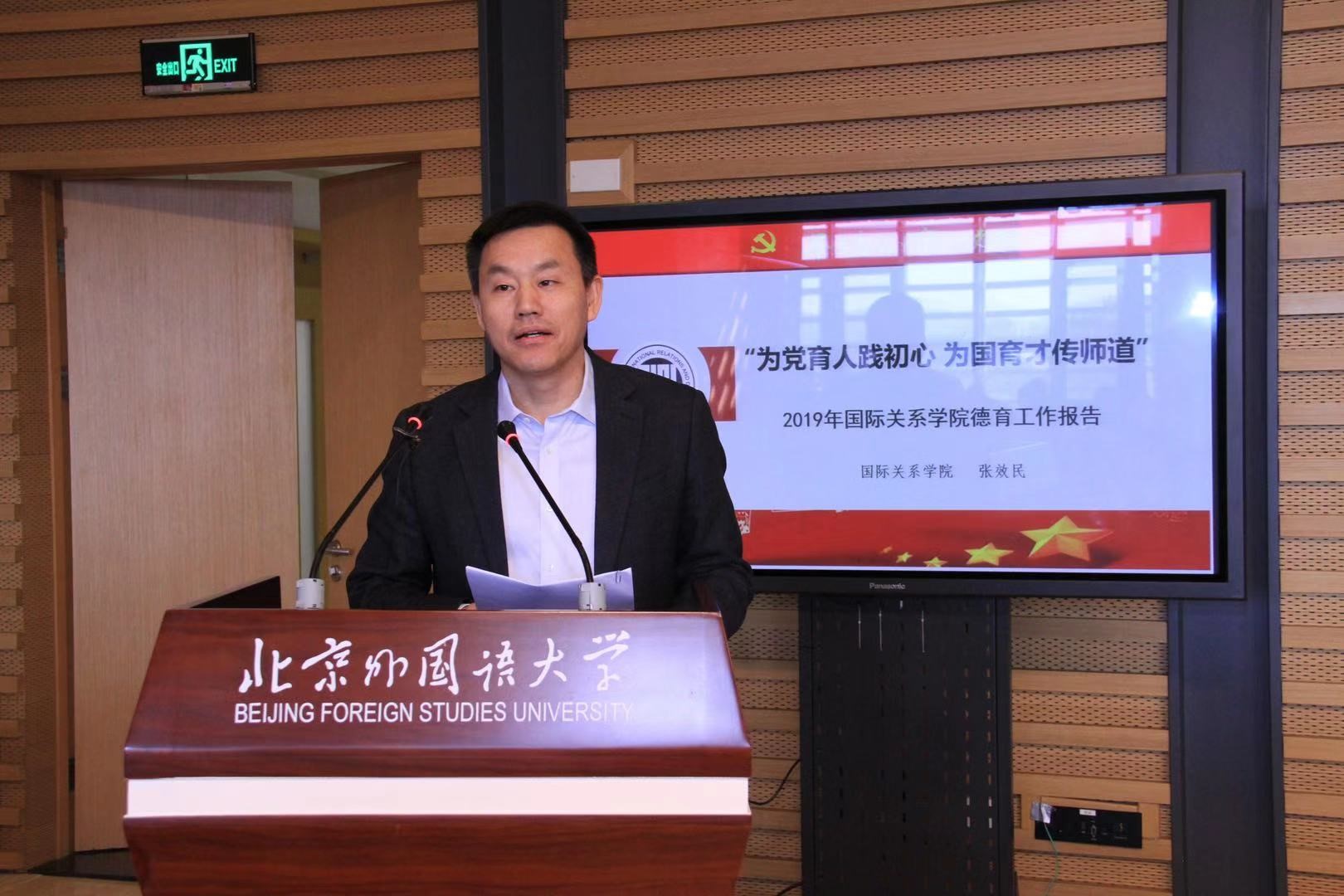 beat365英国官网网站在2019年度大学生思想政治教育工作中,开拓创新,取得实效,成绩突出,荣获beat365英国官网网站2019年德育工作先进集体荣誉称号。beat365英国官网网站党总支书记张效民代表学院上台领奖,并在会上以“为党育人践初心,为国育才传师道”为主题进行交流发言。张效民老师在发言中强调了以学科建设为中心、夯实专业基础,践行全员育人和以学生为主体,锻造学生综合素质,促进学生全面发展等beat365英国官网网站德育工作的关键思路。