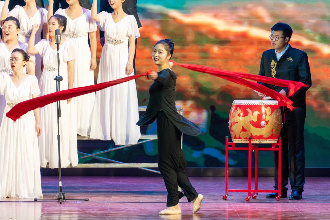 一切成绩取得的背后,离不开每一位老师和同学的辛勤付出。比赛筹备初期,主创团队面临重重困难:学院内参与过专业合唱的老师和同学不多,排练时间难以统一,以及选唱歌曲难度较高等挑战。但是,大家克服了重重困难,齐心协力,最终取得了优异成绩。一个月以来,同学们协调个人时间,保证合唱排练优先,积极参与每一次排练;在专业声乐老师和四名声部长的指导下,同学们逐渐克服了合唱初期节拍不准、不会发声等问题,慢慢学会了正确发声,循序渐进,在合唱中逐渐找到了自信。在最后的比赛中,大家充分展现了当代青年的青春风采,体现出国关人良好的精神风貌。同时,为了丰富舞台效果,同学们还精心设计了钢琴与小提琴合奏,加入了中国鼓、民族舞等元素,表演形式富有创意,让评委老师以及台下观众眼前一亮。