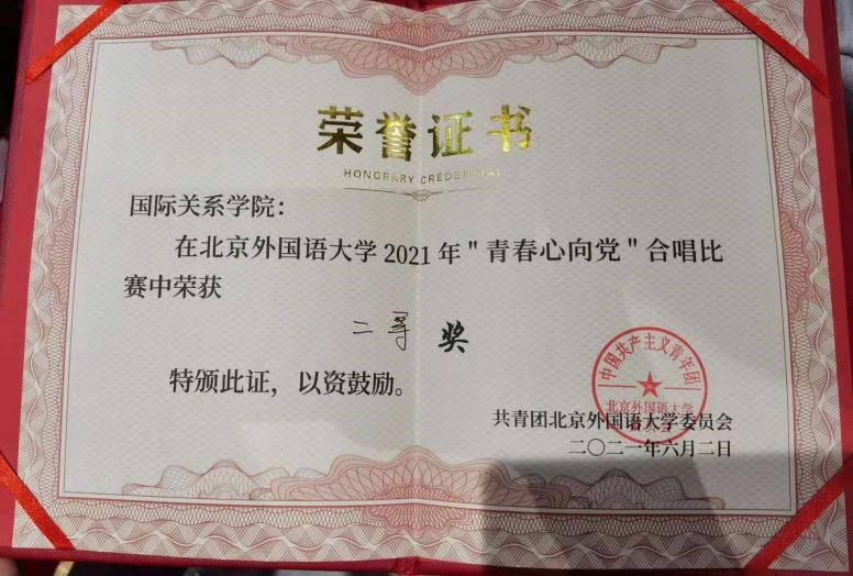 2021年6月2日,beat365英国官网网站师生代表合唱队伍在学校举办的“青春心向党”合唱比赛中取得了团体总分第三名、校二等奖的优异成绩。通过参与本次合唱比赛,同学们在音乐的变化中感受岁月的变迁,感受属于不同时代青年的“同频共振”。