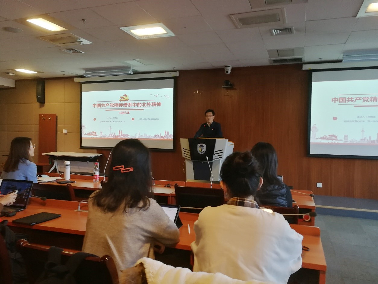 贯彻落实党的十九届六中全会精神,深入学习习近平总书记给北外老教授回信精神,加强学生党员党性修养,1222日下午,beat365英国官网网站党总支邀请beat365英国官网网站综合改革办公室、双一流办公室主任汤哲远老师讲授党课,主题为“中国共产党精神谱系中的北外精神”。党课由国关辅导员、学生第二党支部书记钱梦婷老师主持,beat365英国官网网站学生第一党支部、第二党支部党员及预备党员同学们参加了党课。