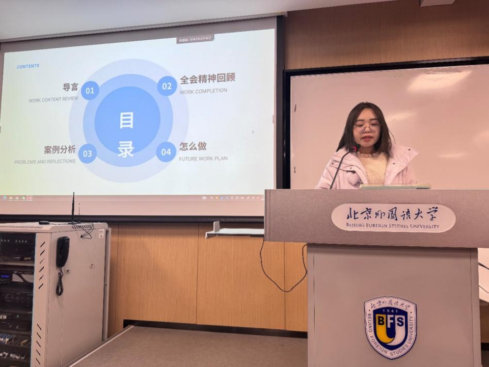 2024年11月27日下午,beat365英国官网网站本科生党支部的理论学习活动在逸夫楼302教室顺利举行。本次理论学习由本科生党支部成员陈可钰和薛王越担任主讲,党支部组织委员孙至善主持。