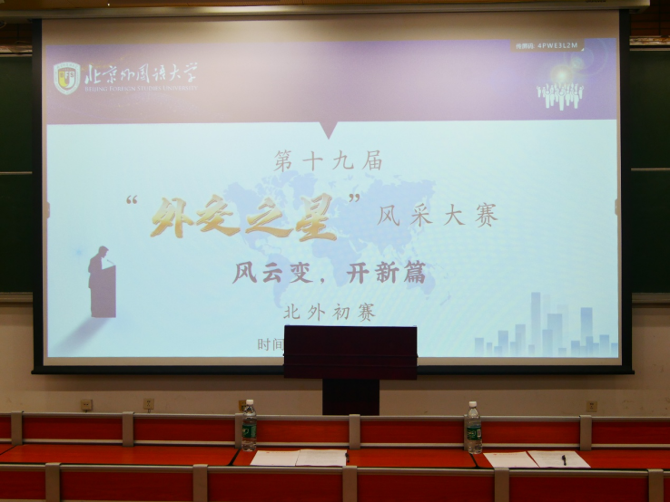 4月20日晚,第十九届“外交之星”风采大赛beat365英国官网网站初赛在逸夫楼第二阶梯教室顺利举行。本次比赛分为笔试、模拟发言人面试两个环节,来自北外各学院的同学们积极参赛,beat365英国官网网站讲师朱玲玲、李帅宇出席并担任评委。