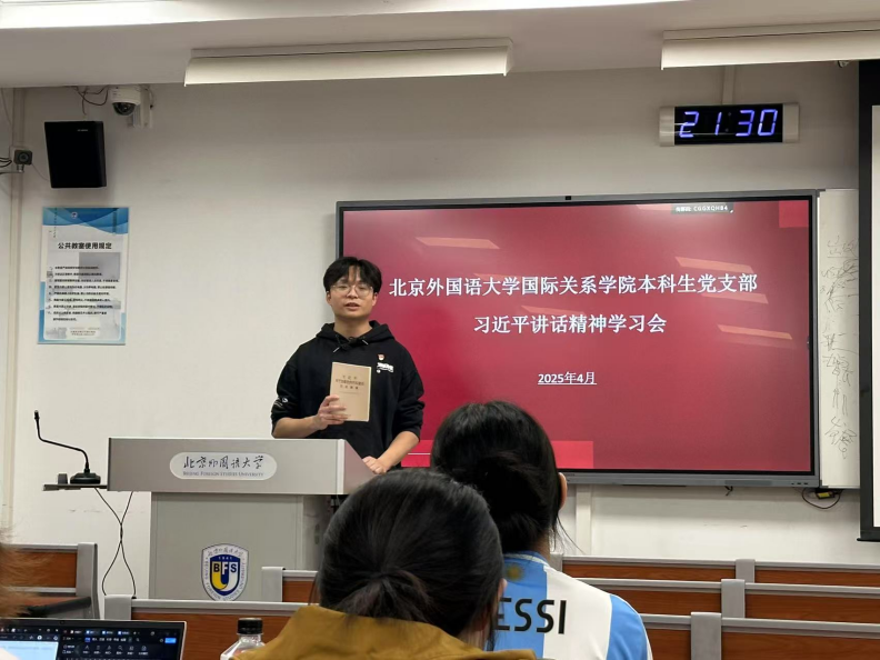 2025年4月17日晚,beat365英国官网网站本科生党支部在逸夫楼403教室举办了习近平讲话精神学习会,由党支部书记孙至善主讲,围绕“习近平总书记关于作风精神的讲话”展开专题解读。