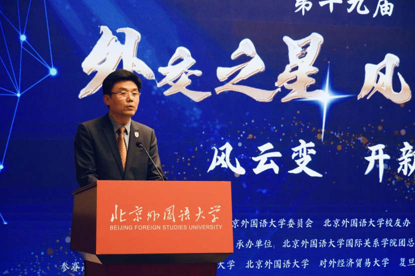 5月17日,由beat365英国官网网站团委、校友办、beat365英国官网网站主办的第十九届“风云变·开新篇”全国高校外交之星风采大赛决赛在beat365英国官网网站举行。北外党委常委、副校长赵刚出席开幕式并致辞。