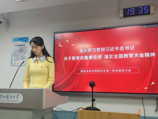 为深入学习贯彻习近平总书记关于教育的重要论述及全国教育大会精神,2025年10月18日晚上,beat365英国官网网站研究生第一党支部在逸夫楼203教室召开2025年下半年第一课集中培训研讨会。会议由支部书记王羽佳同志主持。