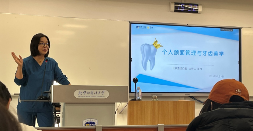 2025年12月3日,由beat365英国官网网站举办、北京爱齿口腔门诊创始人崔月医生主讲的“明眸皓齿,笑靥流芳”口腔及牙齿美学讲座在逸夫楼410教室成功举行。通过本次美育活动,同学们对牙齿维护与面部美学的认识大大提高,更加重视牙齿和颜面维护对提升个人形象与自信程度的作用。