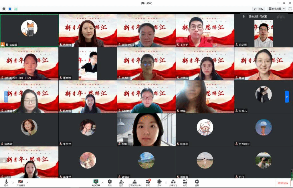 自由讨论环节,同学们联系实际生活,讲述参与本次活动的学习心得体会。王天明同学认为面对新冠疫情的冲击,奋斗不是口号,而是要有在各自岗位担当的。杨洋同学讲述了本人的对如何承担责任、如何发挥自身外交学专业优势的理解。范奕萱同学回顾之前自己撰写公共外交主题的论文,青年如何用自身能力参与到国家的发展大事中。陈泗霖回顾今年参与北外国关红旗团总支外卖消杀点志愿者的筹备工作,认为同学们积极性非常高,感受到北外青年的担当和热血。