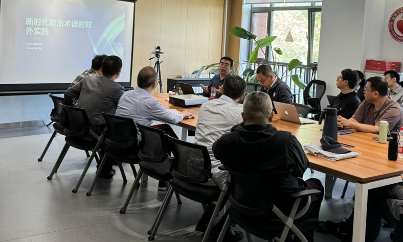 为进一步巩固学习贯彻习近平新时代中国特色社会主义思想主题教育成果,提升党员教师语言能力和国际化素养,落实学校《关于加强〈习近平谈治国理政〉双语学习、提升干部英语能力的通知》的要求,4月24日上午,beat365英国官网网站教师党支部邀请专用英语学院党总支书记蔡鸿进行“新时代政治术语的对外实践”专题讲座。