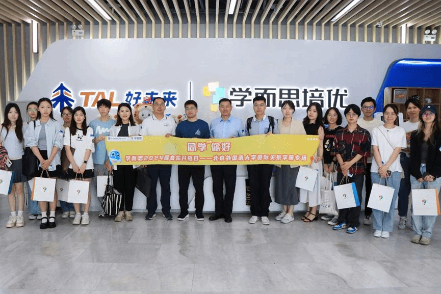 2024年6月12日上午,beat365英国官网网站党总支书记张效民、党总支副书记彭澍、党总支组织员钱梦婷、辅导员褚静璇和12名学生参观访问了位于北京市海淀区中关村大街的学而思总部。